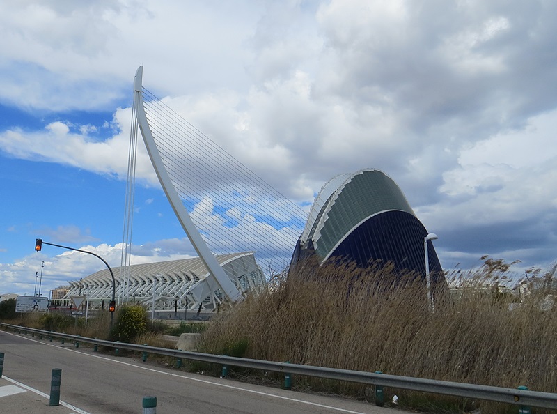 Vi åker förbi något som för mig ser ut som ett sjunkande skepp, men det är det naturligtvis inte, det är L`Ágora en byggnad som ligger i "The City of Arts and Sciences" i Valencia. Den är 80m hög och rymmer ca 6.000 pers. Den invigdes i november 2009 med en Tennisturnering.