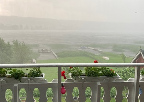 Söndagen kom med samma strålande väder och värme. Bad på fm, men vid 16 tiden började molnen hopa sig och det började blåsa. Trodde nästan det var en tornado för så tog det i. Grenar föll från träden och krukorna hos grannen gick sönder, saker flög runt från altanerna.