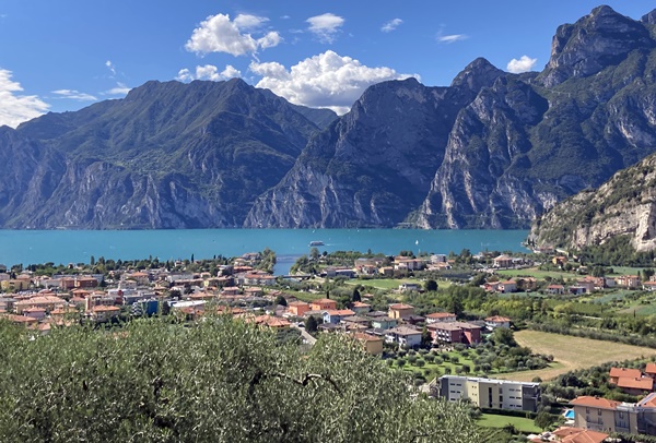 När vi närmar oss Trento börjar det kännas i sätesmusklerna och vi börjar söka vart vi ska stanna. Valet föll på norra delen av Gardasjön och vi svänger av åt det hållet. Här finns en billig ställplats mitt inne i stan, som vi stått på tidigare.